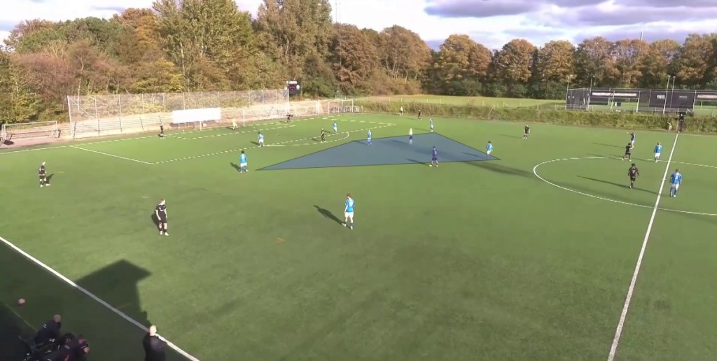 Midtjylland coached by Mathias Rahbek managed to beat the opposition first pressure in their 3rd goal scored by speeding up the play (1-2 touches) to find space centrally to progress and ‘drive’ at the opposition defensive line.