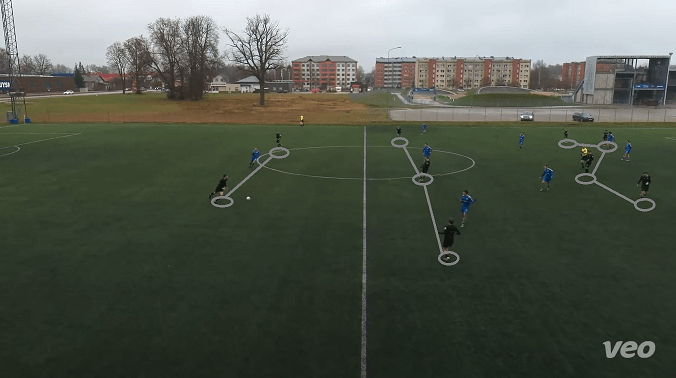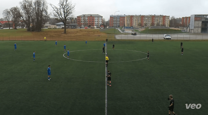 Valmiera FC, coached by Mārcis Ērglis (who is also a player of Nākotnes Līga club FK Smiltene/BJSS) decided to start the match in a formation of 4-2-3-1. They tried to set up and build up the play quickly by lot of swift movements and runs with mixing easy and quick passes. In the second half, being one goal down, the focus was on to strengthen the offense, so they often shaped the formation to a 2-3-5 (as by image below) on possession.