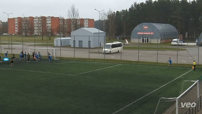 BFC Daugavpils, as reigning champions of the competition, under the guidance of coach Jānis Bovins, started the play in 4-4-2 – with forming into various shapes in practice to which his players could adapt easily. As all sections (defense – midfield – offense) were organized well, they could play their game in all phases confidently. Scoring the leading goal was also a key factor in the 0-2 win; as you can see in the image below, centre-back Rainers Urujevs in the first goal found enough space and played himself unmarked inside the box – so the only task he had to do was to make an accurate header.