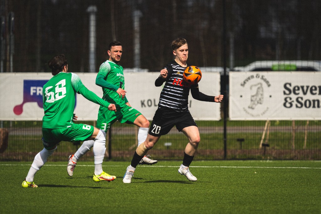 (Mark Mugra in black shirt, in a 3-2 winning match of Esiliiga, against FCI Levadia U21)