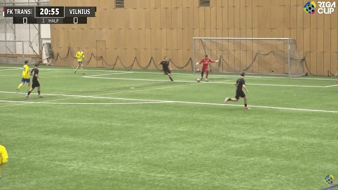 Vilnius Football Academy, led by Robert Šuškevič, used 4-2-3-1 and 4-1-4-1 reminiscent shapes in this clash. The team’s aggressive, heavy pressing game often forced the opposing players to lose the balls or also to make other personal/technical mistakes, hand in hand with letting Vilnius FA to gain the possession in crucial areas of the opposition half. In the second half, during one goal lead and being in more comfortable position, Vilnius FA continued its play with the same determination and mentality, which kept the players’ motivation as well as making them ‘pressure free’.