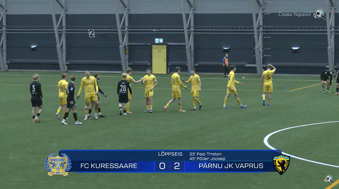 The game’s 33rd minute was the turning point – Pärnu JK Vaprus attacker Tristan Pajo scored the leading goal by his header (0-1). In the last minute of the first half, Joosep Põder doubled the lead, by hitting the net from close range, after receiving a great low cross, performed by his teammate Marten-Chris Paalberg (0-2).