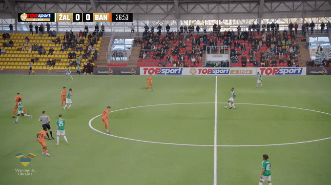 FK Žalgiris, led by its Kazakh coach Vladimir Cheburin, started this encounter in 4-3-3 shape. The team’s ability to build-up quickly, by swift passes were mixed with the quality offensive support of the wing-backs; FK Banga Gargždai on the other side, under the guidance of young Portuguese coach David Marques Afonso, decided to start the game in 4-2-3-1 formation. The conceded goal in the middle of the second half required some changes in terms of the offensive tactics, which resulted in effective and dynamic attacking/counter-attacking play.