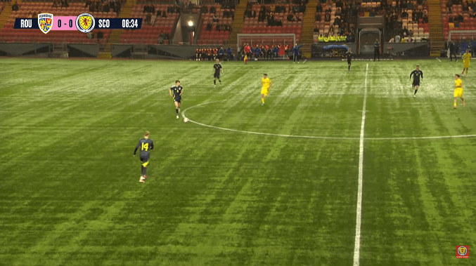 Romania, under its national head coach Nicolae Grigore, employed a 4-3-3 formation, emphasizing attacking play and fluid transitions. The strategy aimed to utilize the wings and maintain possession, seeking for the opportunities to break up Scotland’s defensive setup.