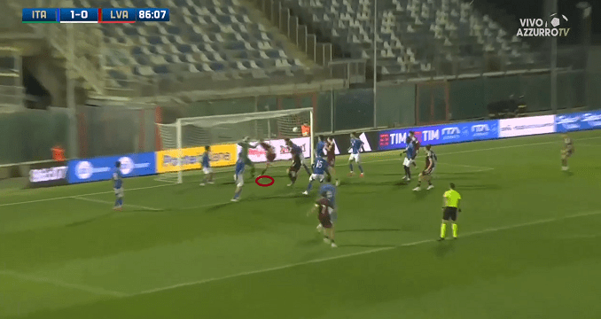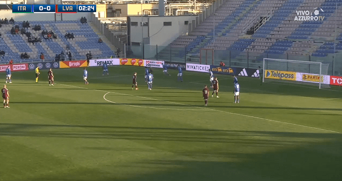 In the 28th minute of the game, Italy‘s winger Seydou Fini made some trouble for Latvia‘s defenders inside the box; although his cross attempt was deflected on a leg, Francesco Camarda forwarded the ball to Jeff Ekhator, who scored by it (1-0). Despite the significant dominance of Gli Azzurrini, the Latvian team equalized the score in the 87th minute, by taking its only one corner kick, which found the head of substitution player Helvijs Joksts (1-1).