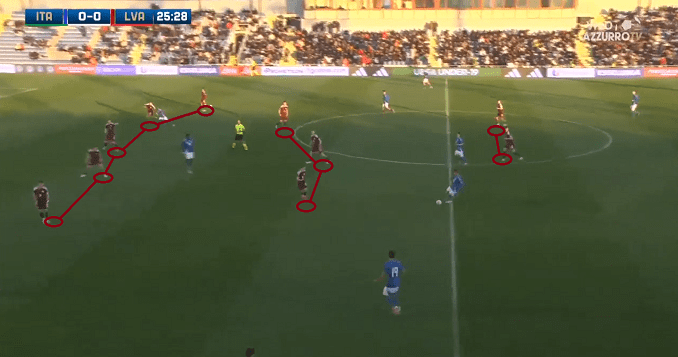 (Examples for Latvia’s 5-3-2 off the ball / defensive system)