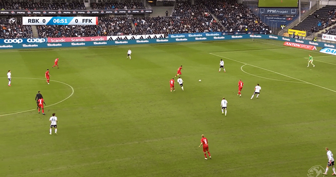 Rosenborg BK, under its Swedish coach Alfred Johansson, started this clash in 4-3-3 formation, which changed to 4-4-2 while out of possession (especially in the second half). The team created several significant chances through the match; a highly confident and fluid game, from the building up to the finish was presented. The play and presence of the two quick and technically gifted wingers (Emil Konradsen Ceïde on the left, and Marius Broholm on the right) were absolutely massive boost for RBK’s offense; while the midfield trio (including Iver Fossum, Sverre Nypan and Finnish Santeri Väänänen) gave stability and creativity to the team.