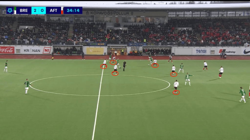 In the second half, Afturelding made a notable tactical adjustment, shifting into a 4-2-3-1 defensive shape. This change was designed to apply higher pressure on Breiðablik’s midfield and disrupt their build up earlier in possession. While it briefly unsettled Breiðablik’s rhythm, the home side’s composure and tactical flexibility eventually reasserted control.