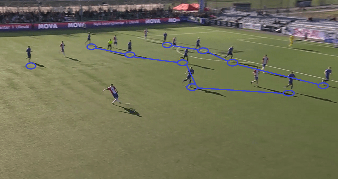 Lyn 1896 FK‘s strong focus was on to stay on feet at the physical challenges, hand in hand with demonstrating significant pressure resilience and hard tackles in the midfield area; Stabæk Fotball on the other side, was able to take the advantages of its wing-play and the fast and technical wingers’ abilities, besides of building up the play quickly.