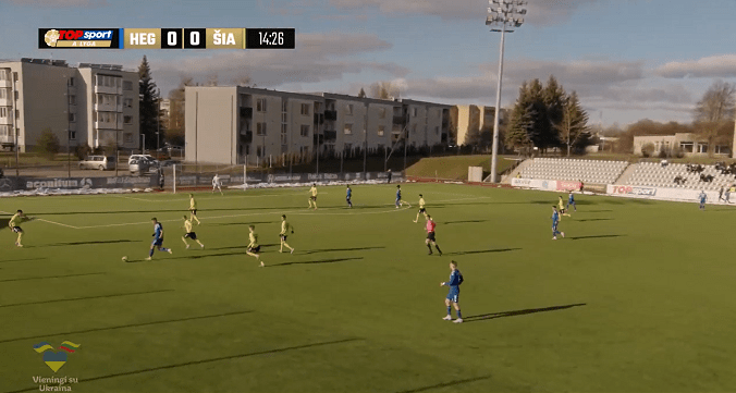 FC Hegelmann, under its coach Andrius Skerla, started the game in 4-2-3-1 formation, which was a 5-4-1 shape (in defending) in the last period of the game, as focusing on to keep the one goal lead. The team was able to demonstrate convincing and dominating presence at the aerial challenges / aerial play. Some great coach decisions, like sending two agile and dynamic wingers / wide midfielders (Donatas Kazlauskas & Romanian Patrick Popescu) to the pitch, for the second part of the last 45 minutes, should be also highlighted.