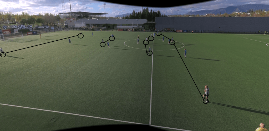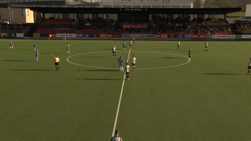 KR’s first goal came from this sustained pressure: after working the ball into the final third, a cross from the right back to the back post was cleared only as far as the edge of the box. A KR player was perfectly placed to strike it cleanly into the net. Their second goal followed a similar pattern patient possession in ÍBV’s half led to a driven low cross from wide, with multiple KR players flooding the box. The initial shot was saved, but they were first to the rebound and punished ÍBV again a reflection of how focused KR are on attacking with numbers and pouncing on second balls.