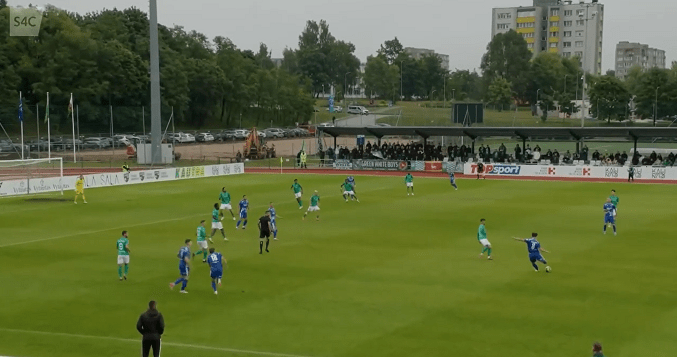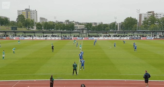 FK Kauno Žalgiris, led by coach Eivinas Černiauskas, started this European clash in 4-2-3-1 formation. The players demonstrated dynamism and creativity through the offense, in addition to a dominant and confident build-up play. The midfield section should be mentioned as one of the main strengths of the team: the trio of team captain Gratas Sirgėdas, Serbian-Belgian Damjan Pavlović (both defensive midfielders) and Belgian-Moroccan Amine Benchaib (attacking midfielder) supported the alone young Lithuanian international striker Romualdas Jansonas in quality way. All things considered, this massive and convincing 1st leg win was well-deserved for the Green-Whites.