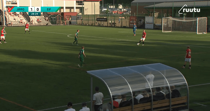 The first goal of the game came up in the 27th minute, when Maximus Tainio (son of Teemu Tainio, former Finnish international player who played for AJ Auxerre, Tottenham Hotspur F.C. and AFC Ajax, among others) took the lead for Jippo Joensuu, by his wonderful right-footed ‘rocket’ (1-0 / in the images below). In the 31st minute, Ekenäs IF French defender Thadée Kaleba equalized the score (1-1). Still in the first half, Salomo Ojala (EIF) also found the opposition goal, so the advantage was on the guests’ side in the break (1-2). Only few moments after the start of the second half, the score was equal again: Miro Turunen of Jippo rattled the net by his fantastic right-footed shot (2-2). The game’s last hit came up in the 71st minute, as substitution player Jyri Kiuru took the advantages of an opposing mistake at the back, turning it to the match-deciding goal (3-2).