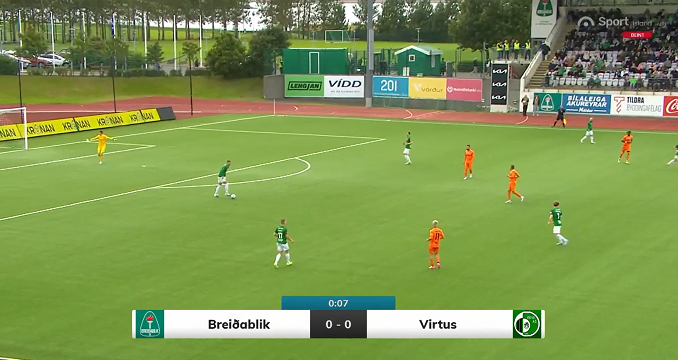 AC Virtus, under the guidance of Italian Luigi Bizzotto, opted for a 4-2-3-1 reminiscent formation in this European clash. Their off-ball / defending shape often was visible as 4-4-2, where the veteran attacking midfielder Ivan Buonocunto (former Udinese youth player) was moved up, to start making pressure from the side of alone striker Stefano Scappini. They mostly had to adapt the game controlled by Breiðablik; the elevated defensive play of the team took a lot of energy, and the high level of concentration was also mentally taxing. With this disciplined play, hand in hand with the superb goalkeeping performance of Samuele Guddo (ex-Palermo youngster), their hope is still alive, to go through the Icelandic opponents with a great result in San Marino.