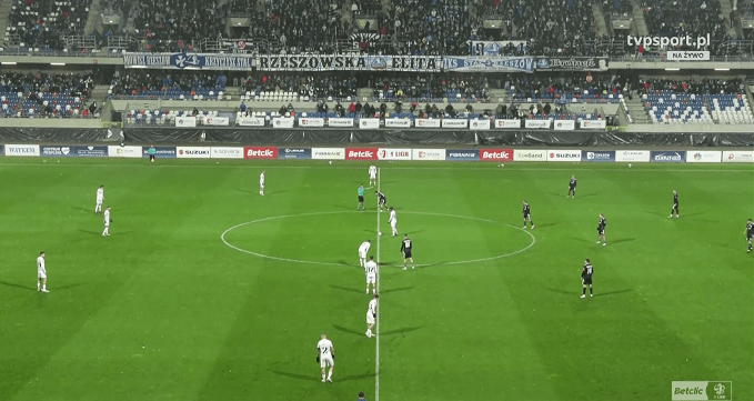 Stal Rzeszów, led by coach Marek Zub, started the game in 4-3-3 formation, which was 4-5-1 / 5-4-1 when they were out of possession. Team captain Sébastien Thill (who is international player for Luxembourg) came up as the main playmaker; Oliwier Sławiński (who started the match as central midfielder) had to play in the Number 9 position from the middle of the first half, due to the injury of the original striker Brazilian Jonathan Júnior.