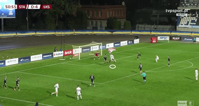 ŁKS Łódź, under the guidance of Szymon Grabowski, opted for 3-5-2 formation, which was 5-3-2 in defending / out of possession. The main characteristics of the team-play were: fluidity and massive confidence. As on the opposition side, Łódź’s main playmaker was the team captain Michał Mokrzycki, who was also able to deliver balls to the middle by long throw-ins. The two wide midfielders (Swedish Gustaf Norlin as left midfielder & German Jasper Löffelsend as right midfielder) offered quality support also for the defense.