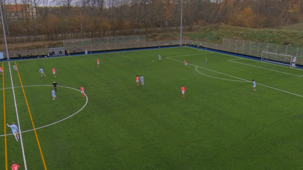 Their goal also came from a long pass by their goalkeeper Rasmussen which developed into a successful finish from close range by Hjort-Pedersen (9′).